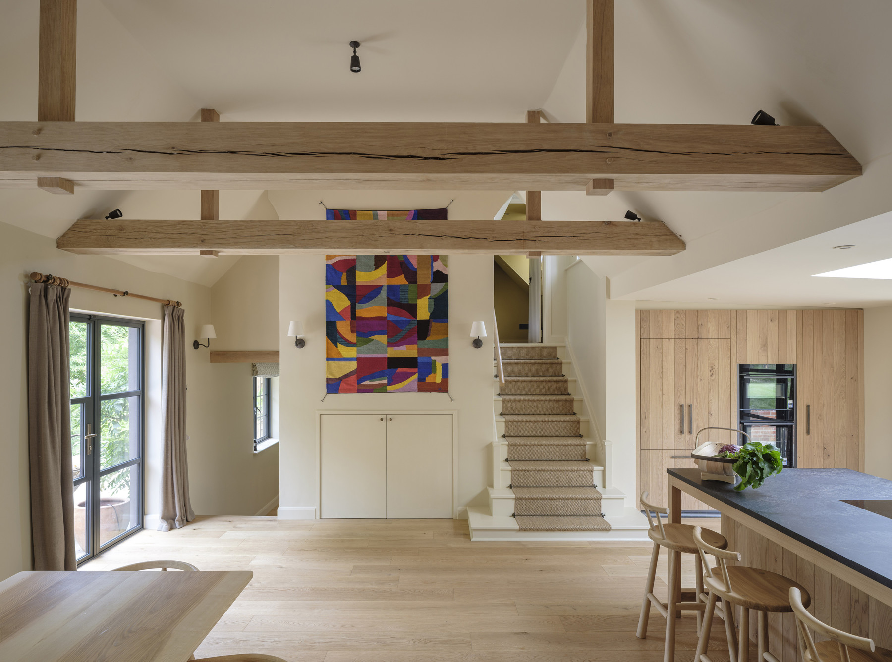 Located within the Surrey Hills Area of Outstanding Natural Beauty, the proposed works needed to contribute towards the dwelling sitting within the natural topography of the site rather than standing out against it. Natural materials are used both internally and externally to complement the existing historic architecture, of which strong features have been retained and enhanced as a celebration of the site's rich history.